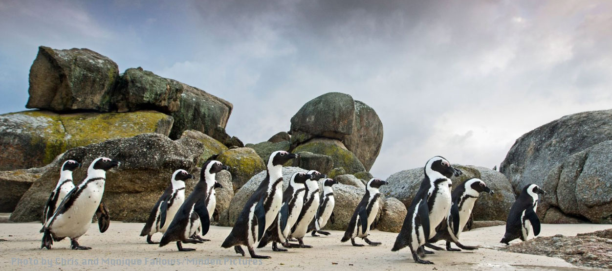In the wild, however, African penguins face continued threats, mostly from people. The collection of guano for fertiliser has deprived them of the material they use to build burrows. Oil spills in 1994 and 2000 killed 30,000 birds despite rehabilitation efforts. And commercial overfishing has forced the birds to swim much farther for food.